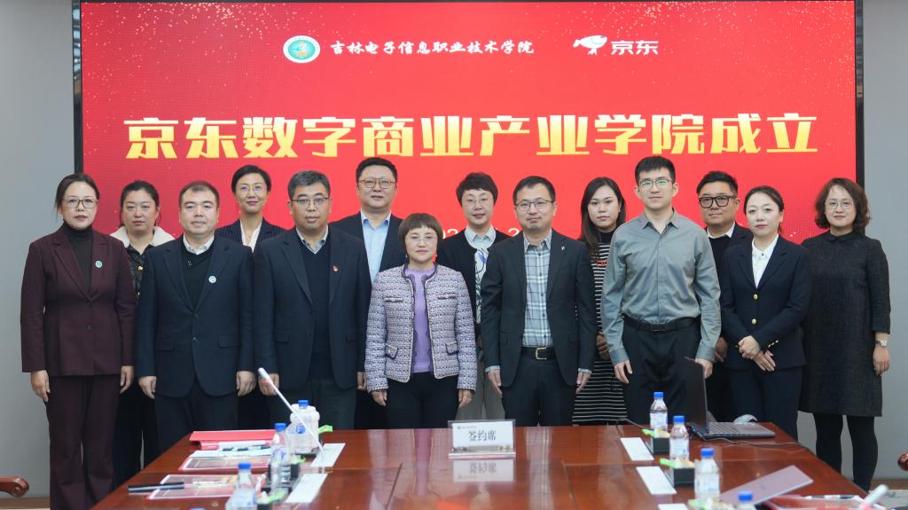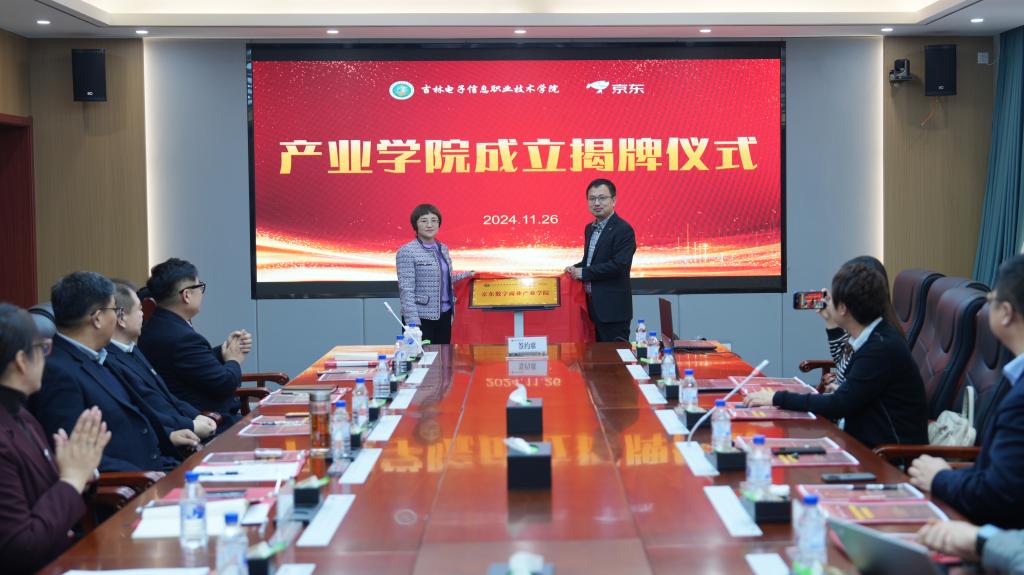 11月26日,学校京东数字商业产业学院成立暨揭牌仪式在新山校区匠德楼四号会议室举行。学校副校长张晓娟出席仪式并讲话。京东物流集团教育业务部北方大区总经理于洋、建设方案经理岳辛、吉林省区经理贺宇、京东科技集团吉林省区副总经理杨帆、京东春晓计划讲师孙宇婷,教务处处长罗大伟、财经学院主要负责同志及相关专业教师参加仪式。仪式由财经学院办公室主任王盛瑄主持。